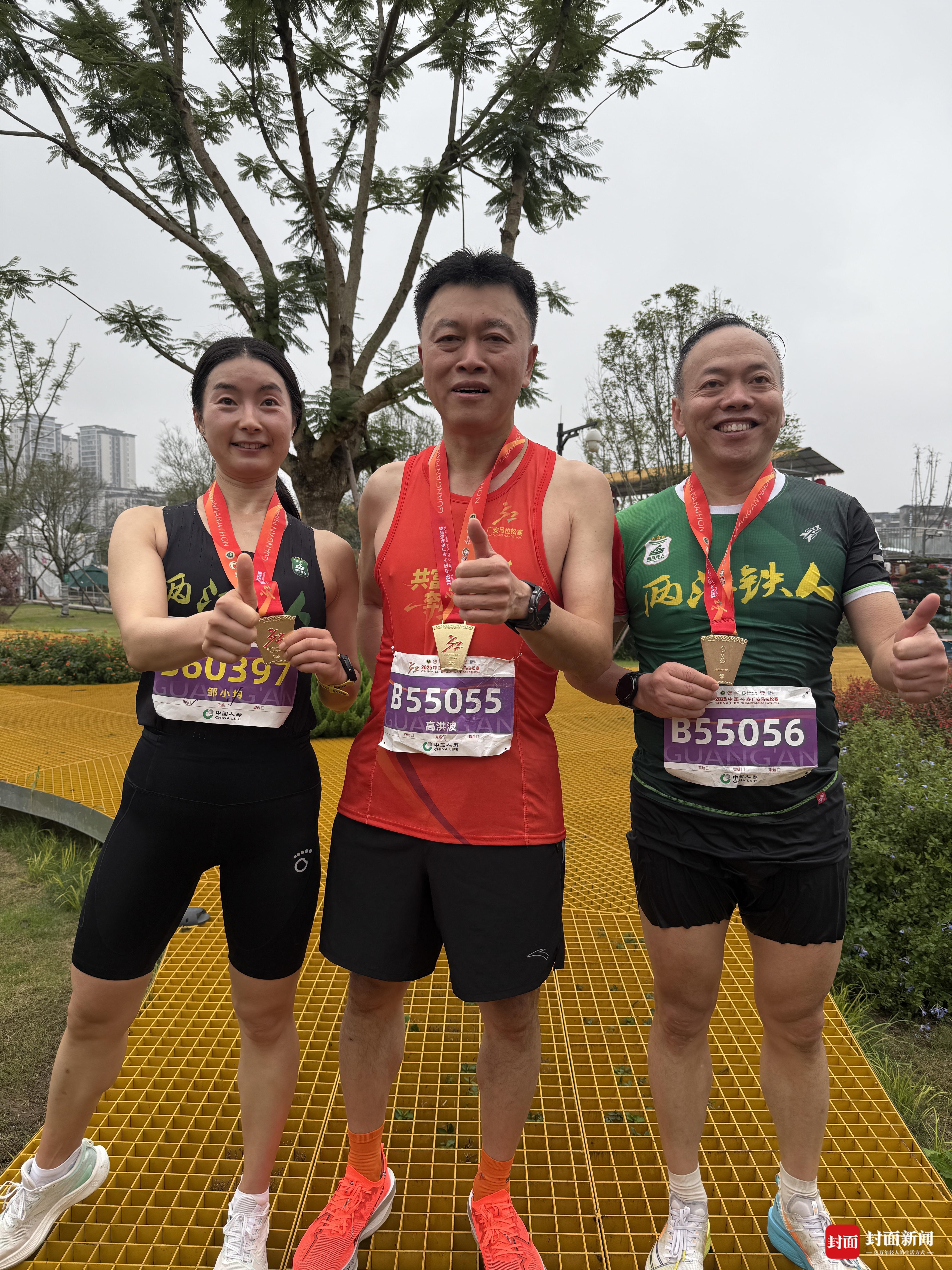 “我希望通过自身锻炼和参赛经历,向社会传递正能量,带动更多人参与运动。”高洪波说,在此次广安比赛的赛前赛后,均遇到跑友热情合影交流,也有跑友告诉他:“我到你荣昌区跑过,就是因为你,我才开始跑步”。这让他倍感欣慰,也感受到了四川及广安跑友的高水平,认为此次参赛是一次宝贵的交流学习机会。