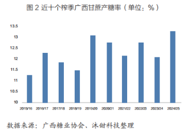 2023/24榨季由于开榨之后的持续降雨导致单产创纪录,但产糖率下降明显,2024/25榨季开榨之后的秋冬连旱天气则造成了完全相反的结果,创纪录的产糖率很大程度上弥补了单产不足的问题,产糖量有所增加(图2)。